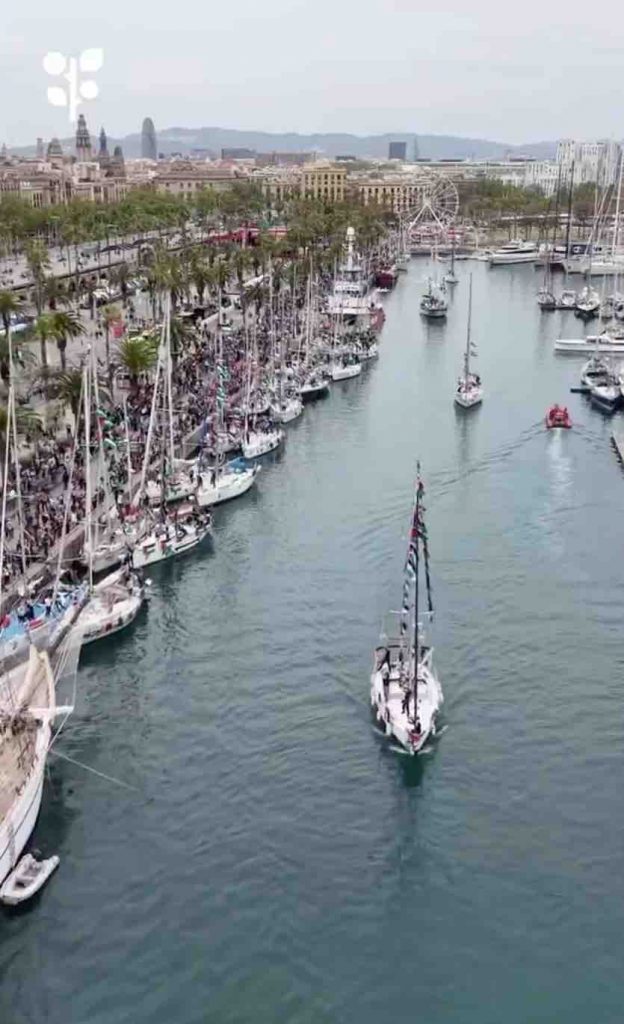 Barcelona, 12 de abril de 2026 – La Global Sumud Flotilla (GSF) ya está en el mar, aunque no de la forma prevista. Tras dos días de intensas jornadas culturales y políticas en el Moll de la Fusta, la delegación catalana —integrada por unas 40 personas y arropada por barcos de apoyo como el Arctic Sunrise de Greenpeace— ha zarpado a las 13:30h del puerto de Barcelona.